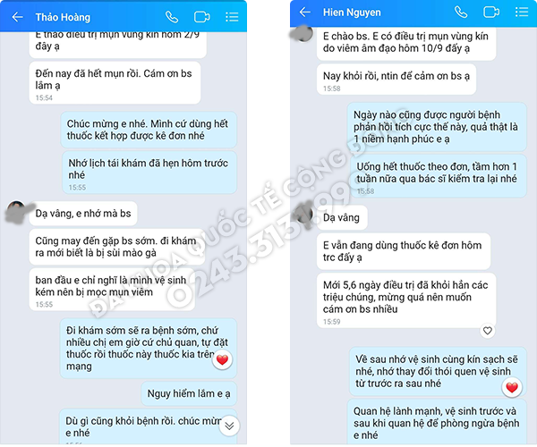 - Anh T.H (39 tuổi): “Trước đây mình từng điều trị sùi theo phác đồ chung, làm xong thì yên tâm được một thời gian rồi lại tái phát. Lần này mình thấy khác ở chỗ bác sĩ theo sát tình trạng của mình, điều chỉnh từng giai đoạn nên tâm lý đỡ lo hơn. Sau điều trị, tình trạng ổn định, không còn cảm giác bất an như trước.”